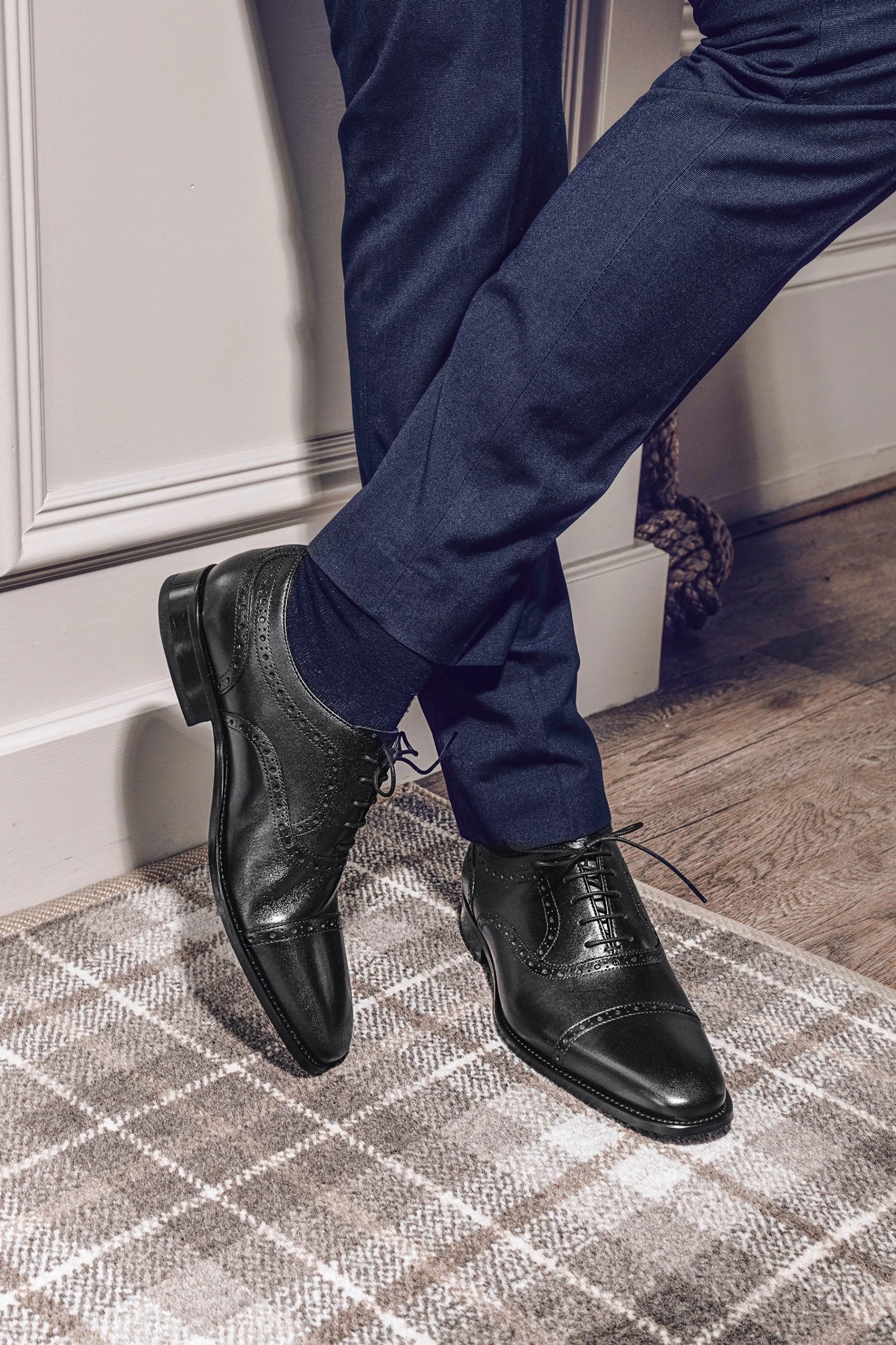 Jones Bootmaker Black Joseph Leather Oxford Men’s Semi-Brogues