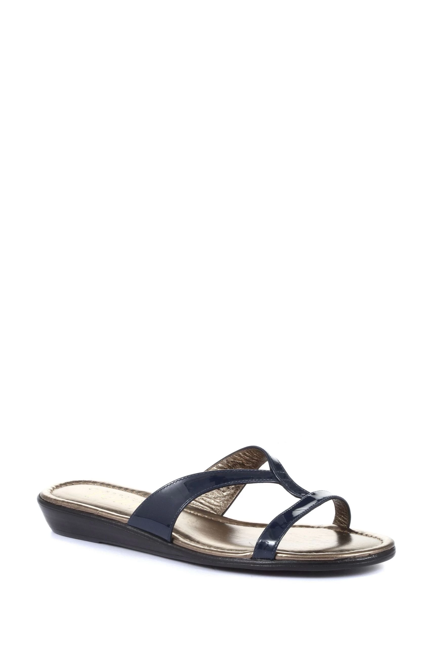 Jones Bootmaker Blue Klevina Ladies Leather Leopard Print Mule Sandals