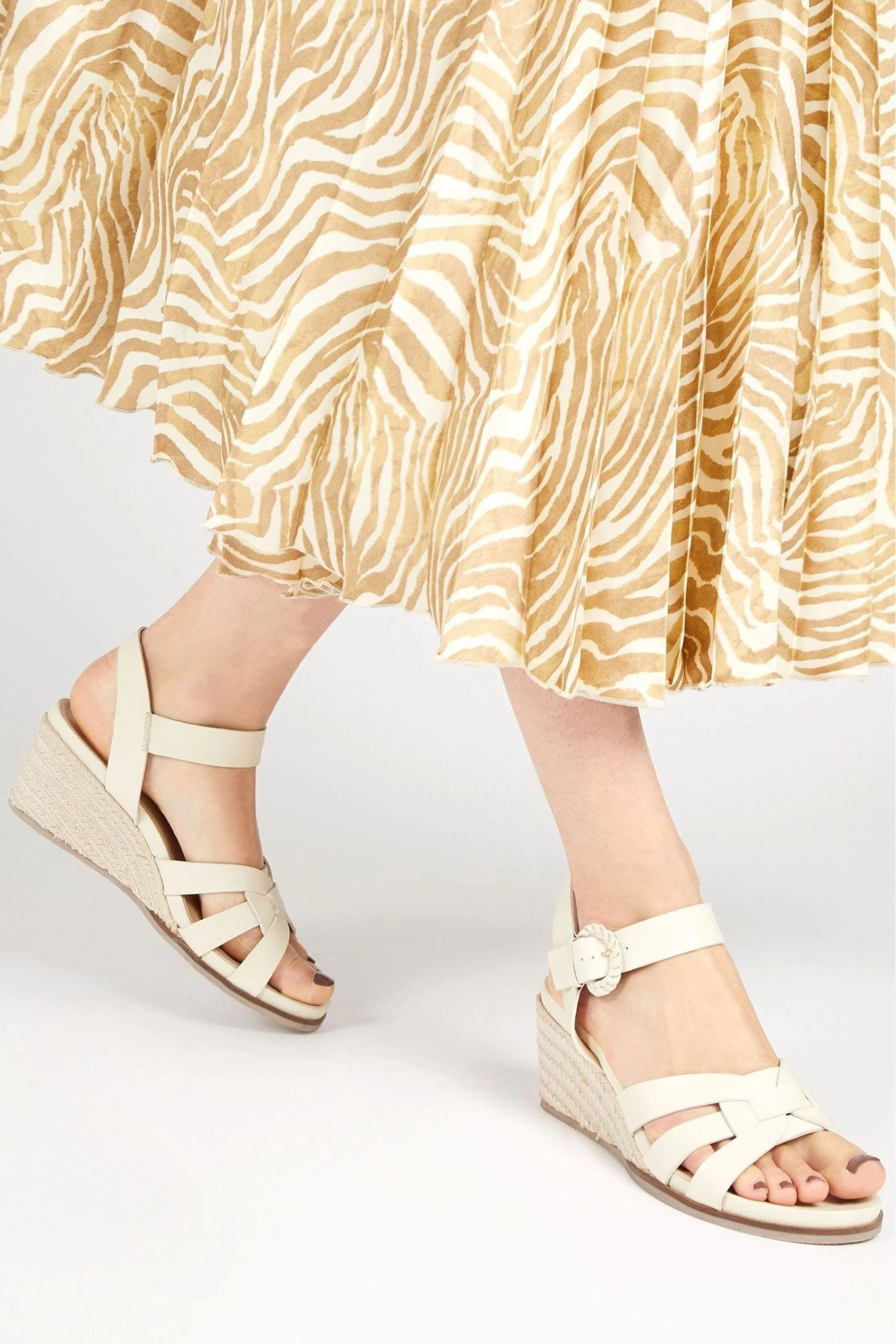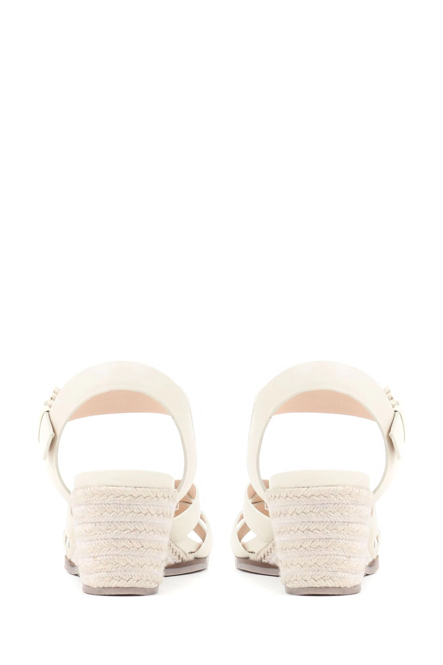 Jones Bootmaker Cream Loriana Leather Woven Wedge Sandals