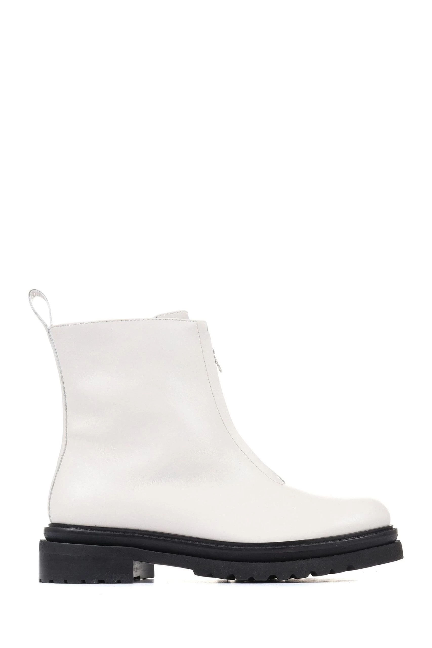 Jones Bootmaker Lanie White Zip Up Chunky Boots