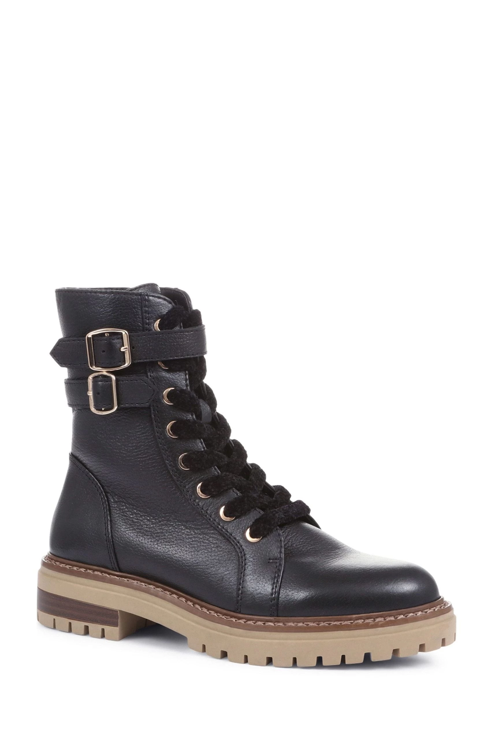 A rugged biker boot with a softer side, that’s what our Simonetta biker boots have to offer. Sculpted in grained leathers and featuring a duo of side buckles at the cuff, Simonetta is fastened courtesy of an inside zip and showcases soft, chunky chenille laces. Set upon a chunky outsole with a traditional commando tread, lean into Simonetta’s softer side by teaming them with floating dresses.